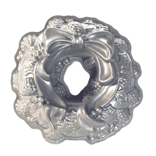 | 30 of 30 people found the following review helpful: By This review is from: Nordic Ware Holiday Wreath Pan (Kitchen) For many years I owned the basic fluted Nordic Ware bundt pan. Occasionally I made a rich pound cake and then returned the pan to its place in the cabinet not giving the matter much thought. Then a few years ago I saw this Christmas Wreath pan in a gourmet cooking shop. I'm not sure if it was the intricacy of the design or the obvious quality but I had to have it and as other beautiful designs are created by Nordic Ware, they are added to my bundt pan collection. Using a pan like this makes baking in a plain round or rectangle seems unnecessarily bland. This pan produces gorgeous cakes that look simply stunning. No additional decorating is needed, except for a sprinkle of powdered sugar to bring out the details. Begin by spraying the pan liberally with a baking spray that contains flour, like baker's joy, then turn the pan upside down and let it drain over paper towels while preparing the cake. Use a thick batter either from scratch or alter a cake mix. The included... Read more 13 of 13 people found the following review helpful: By This review is from: Nordic Ware Holiday Wreath Pan (Kitchen) I baked Ina Garten's Lemon Cake in this pan for the Holidays and it was not only a gorgeous cake it was delicious..The cake came right out of the pan and I brushed the glaze on with a wide pastry brush...I own many many nordicware pans and this is one of my very favorites. In case your wondering..the pan is large but the cake recipe from Food Network was adequate to make a nice cake without doubling the recipe!...I also brushed the pan with shortning prior to flouring it and lowered the oven temp. to 325 Degrees and it came out a golden brown,just like the picture. If you do a lot of baking...this is a pan to add to your collection!..Thanks Amazon. 1 of 1 people found the following review helpful: By Andrea (Close to WDW) - See all my reviews Amazon Verified Purchase This review is from: Nordic Ware Holiday Wreath Pan (Kitchen) I saw this pan on a gold box last year and had to have it. I'm so glad I bought it. It is a heavy, high quality pan that turns out everytime with ease. I use a light coat of Pam for Baking. The first time I used it, I made the Hershey's Chocolate Cake recipe (the one of the back of the box) and dusted with powder sugar. Next I made my carrot cake. My carrot cake is a very, very dense carrot and spice cake that is a family favorite. WOW! It came out so nicely that I did not frost it but served cream cheese frosting in a crystal bowl next to it. Next time I may just pipe some red frosting on the ribbon to make it pop. I love the Nordic Ware pans so much that I now own 3 and am looking at replacing all my baking pans with these. |